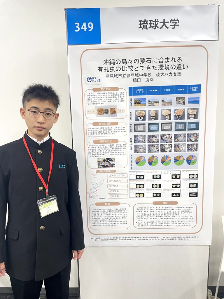 鶴田 湧丸(中学校2年)/『沖縄の島々の粟石に含まれる有孔虫化石の比較とできた環境の違い』/(指導教員:藤田 和彦 琉球大学 理学部 教授)