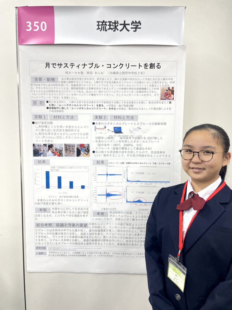 時田 あんね(中学校2年)/『月でサスティナブル・コンクリートを創る』/(指導教員:富山 潤 琉球大学 工学部 教授)